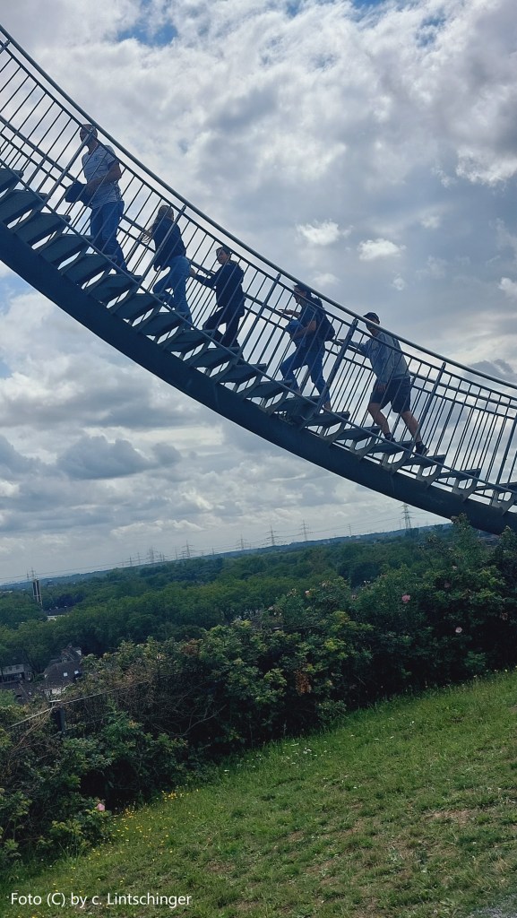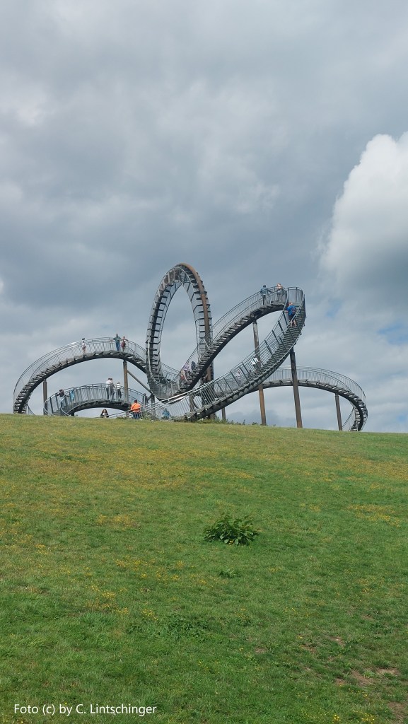Hinweis #1: Bei der Sehenswürdigkeit handelt sich um eine begehbare Großskulptur (20,6 m Höhe x 48,2 m Breite x 34,4 m Tiefe) mit verzinktem Stahl als Baumaterial. Maximal 195 Besucher sind gleichzeitig zugelassen. Der höchste erreichbare Punkt hat eine Höhe von 13 Metern. 220 Meter beträgt die Gesamtstrecke, die der Besucher auf Gitterrostböden zweigeteilt beschreiten kann. Die Skulptur inkludiert ein Looping, das für die Touristen gesperrt ist. Die Anlage wurde im Jahr 2011 fertiggestellt und steht auf einer begründen Halde, die sich rd. 35 Meter über dem umliegenden Straßenniveau erhebt. Die Sicht ist daher fantastisch.