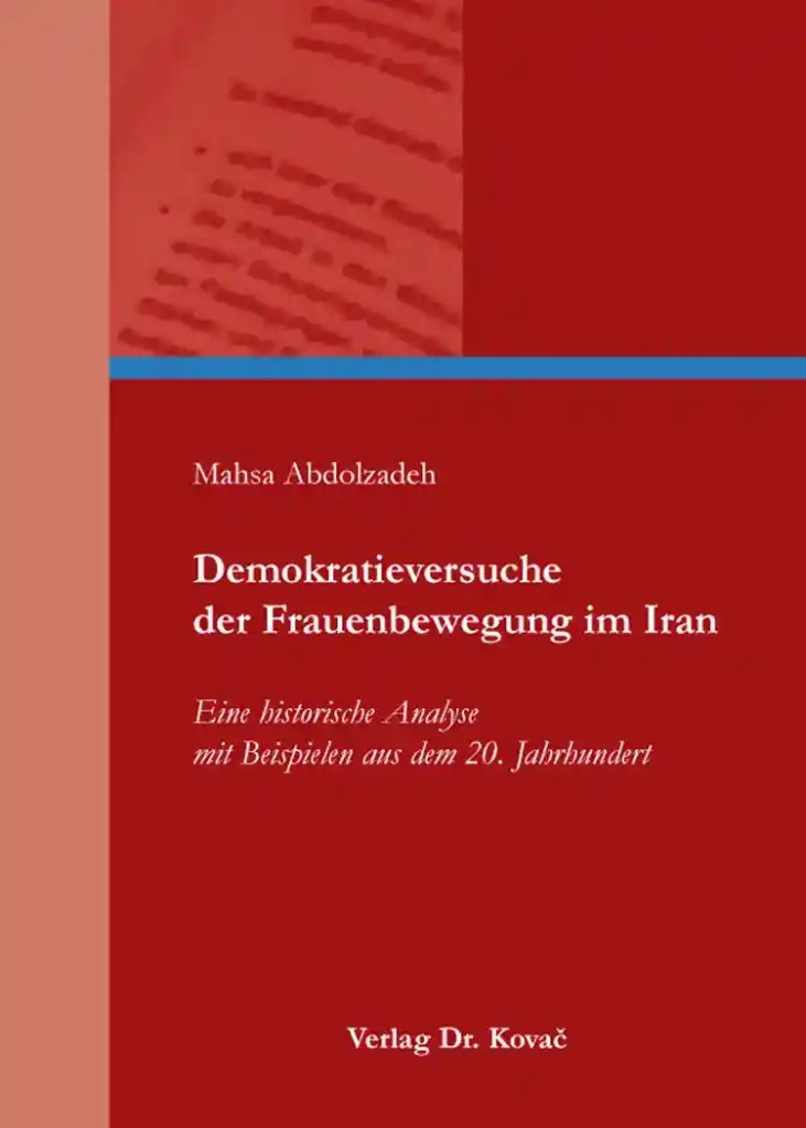 Das Werk „Demokratieversuche der Frauenbewegung im Iran Eine historische Analyse mit Beispielen aus dem 20. Jahrhundert“ ist 2014 in der Schriftenreihe „Gender Studies Interdisziplinäre Schriftenreihe zur Geschlechterforschung“ im Verlag Dr. Kovač (Hamburg) mit 136 Seiten erschienen. Auf der Webseite des Verlags wird die Paperback-Ausgabe (ISBN (Print) 978-3-8300-7837-1) zum Preis von EUR 75,80 angeboten. Das Buch ist auch in einer elektronischen Ausgabe (ISBN (ePDF) 978-3-339-07837-7) erhältlich.