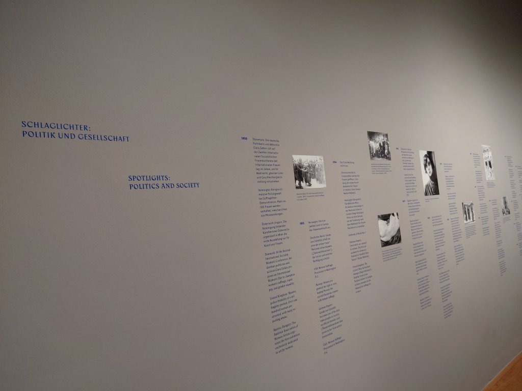 Kritik: Zweifellos ist es sinnvoll, in dieser Kunstausstellung auf die gesellschaftlichen und politischen Hintergründe der feministischen Bewegung einzugehen. Auch will ich die Bedeutung der Sozialdemokraten bei der Einführung der Frauenwahlrechte nicht abstreiten, aber als jemand mit liberaler Einstellung störe ich mich daran, dass die Rolle sozialistischer Akteure zu einseitig positiv und damit unvollständig und verzerrend dargestellt wird. Ja, die Zweite Internationale Sozialistische Frauenkonferenz in Dänemark, auf der der Internationale Frauentag ins Leben gerufen wurde, war wichtig für die Frauenrechtsbewegung. Verschwiegen wird jedoch, dass in anderen Ländern die Linksparteien die Einführung des Frauenwahlrechts über lange Zeit blockierten. So geschehen etwa in Frankreich, wo sie bei einem Stimmrecht der Frauen einen steigenden Einfluss der Kirche befürchteten. Gleiches gilt für Belgien: Auch dort haben die Sozialisten 1902 die Forderung ausdrücklich fallen gelassen, weil sie eine Solidarisierung der Frauen mit der katholischen Kirche erwarteten. In Süden hielten männliche Sozialisten das Frauenwahlrecht für nachrangig, solange soziale und rechtliche Gleichstellung nicht erreicht waren. Italienische Industriearbeiter sahen es auch nicht so gern, wenn ihre Frauen außer Haus arbeiten gingen. Die Sozialistische Partei Italiens war daher im frühen 20. Jahrhundert zögerlich und skeptisch gegenüber dem Frauenwahlrecht.